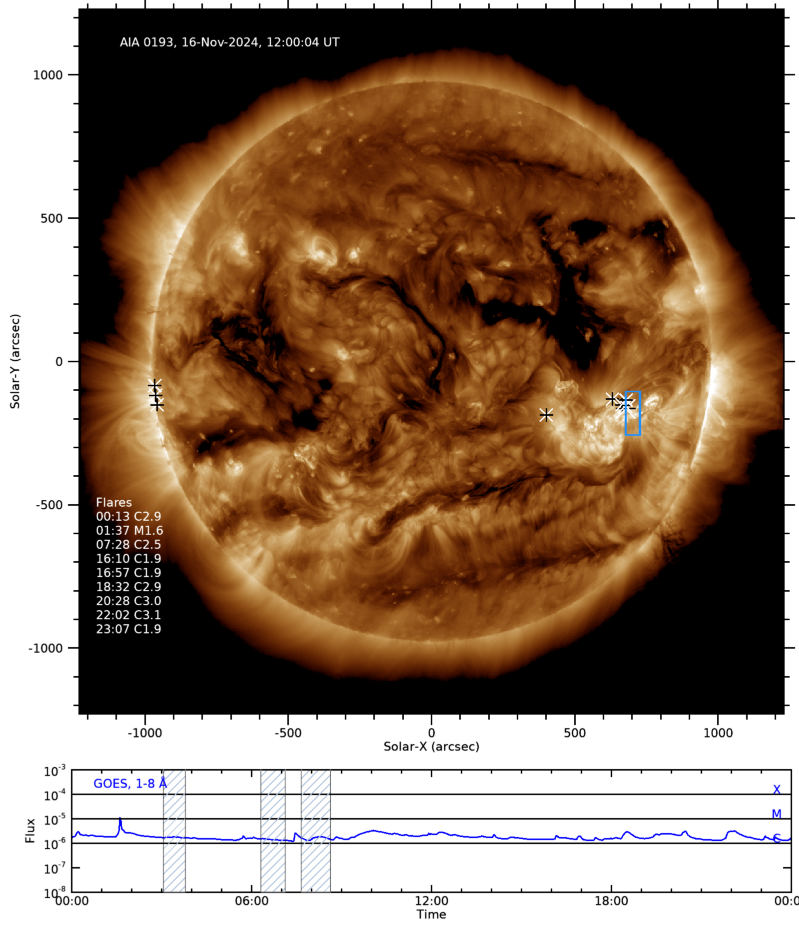 | 03:42:16 | 03:47:06 | EL_DHB_01v3 | 703.2 | -180.7 | Major flare watch - AR13889 |